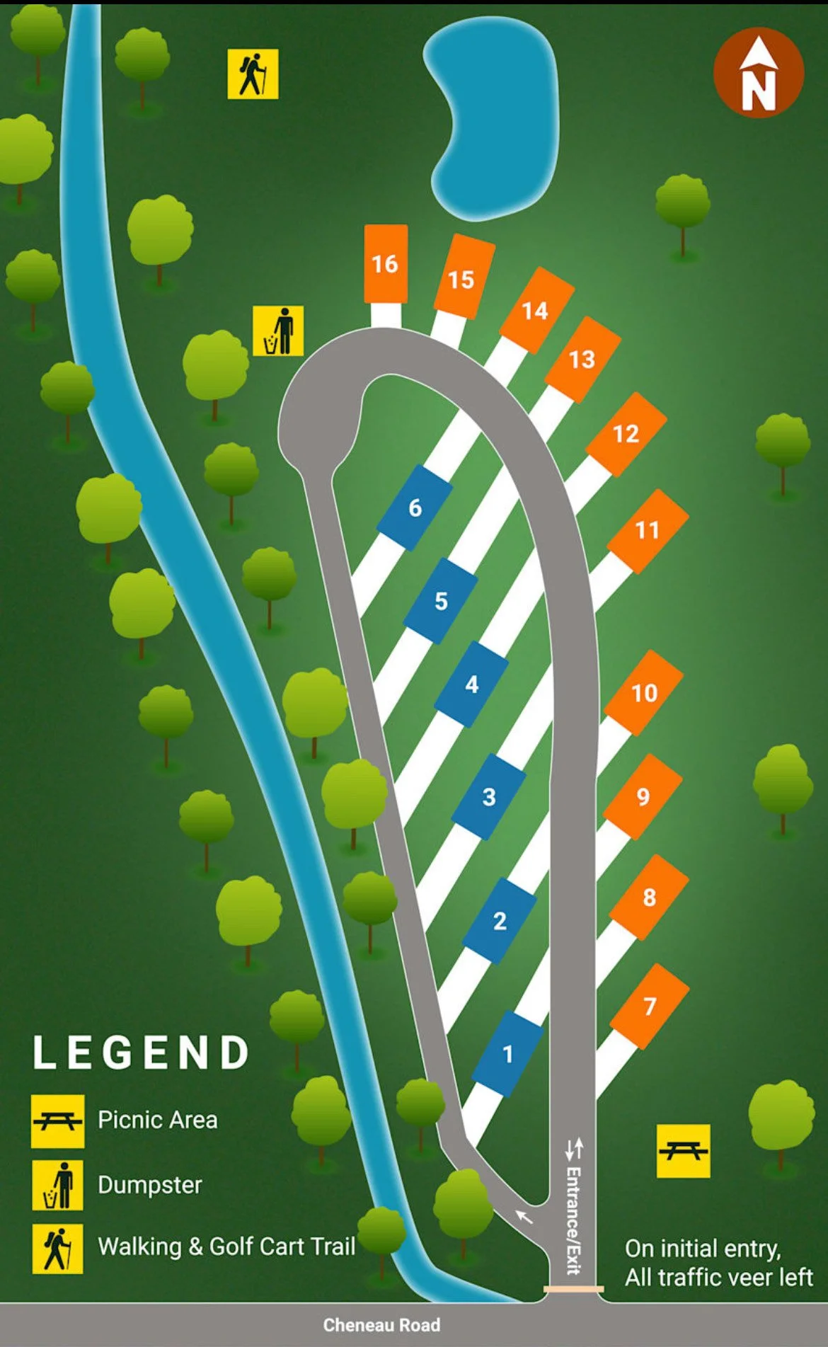All Sites are Spacious and have Full Hookups with: 50 Amp Electric, Water, Sewer, & Patio Pad